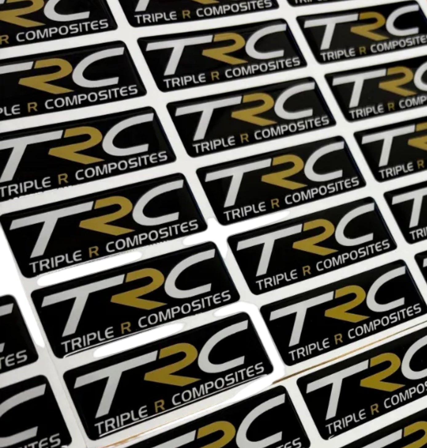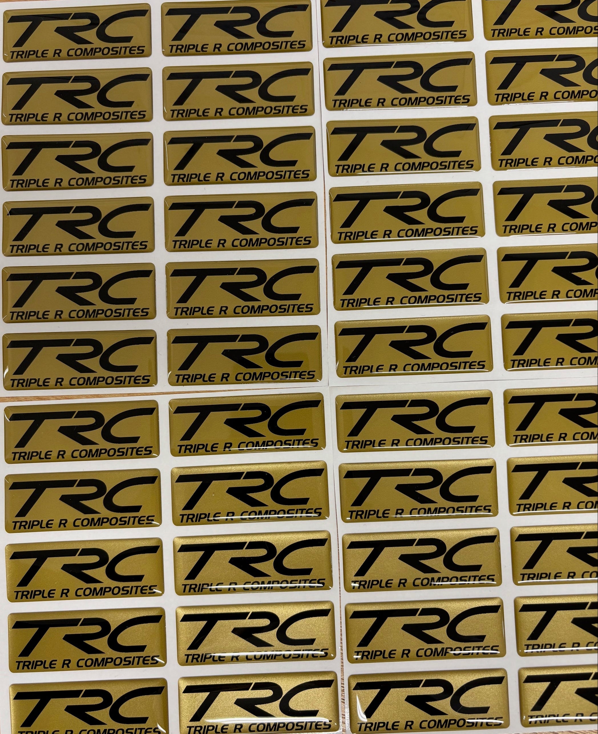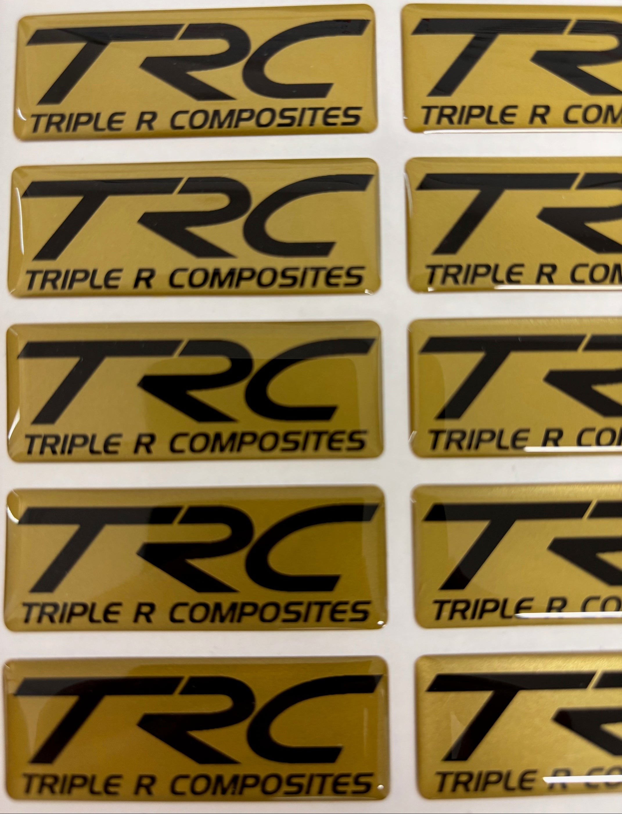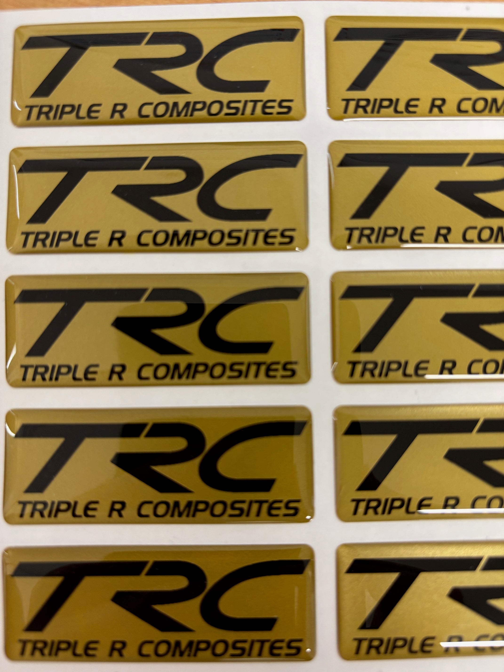 As it says! TRC logo gel badge. Pick from either a gold 'R' or gold background.