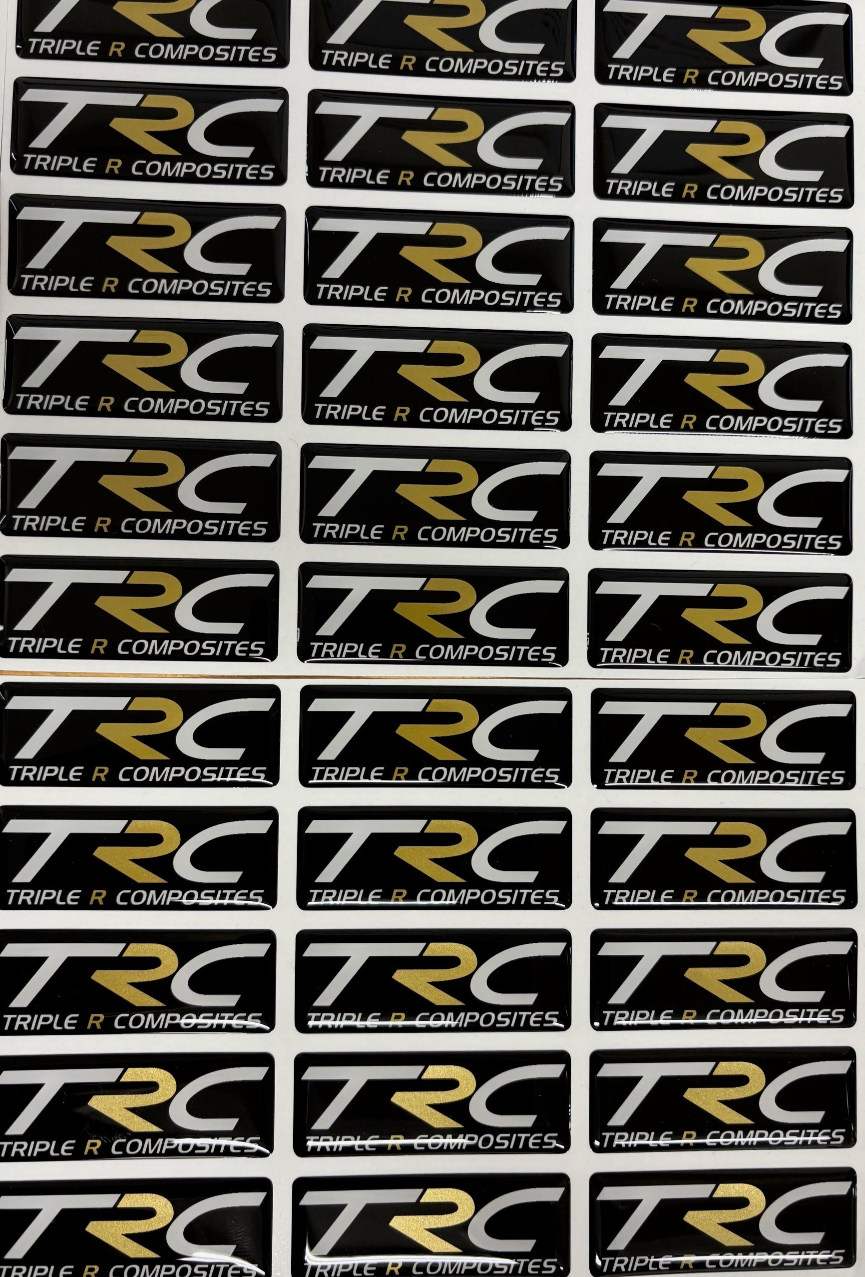 TRC logo gel badge. Pick from either a gold 'R' or gold background.